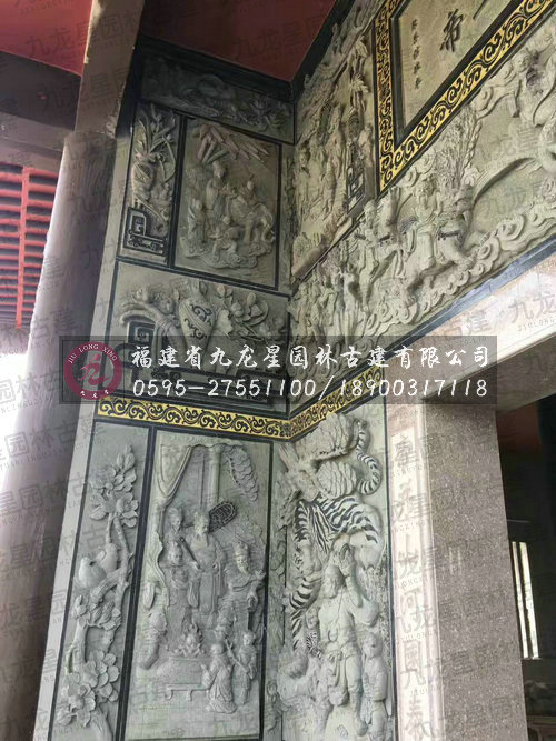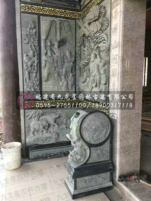 九龍星園林古建最新寺廟外墻青石浮雕安裝實(shí)拍圖
