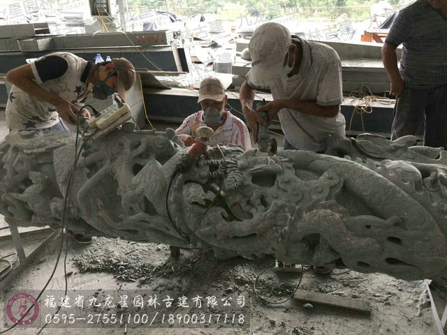 大量石雕青石龍柱現(xiàn)場(chǎng)加工中