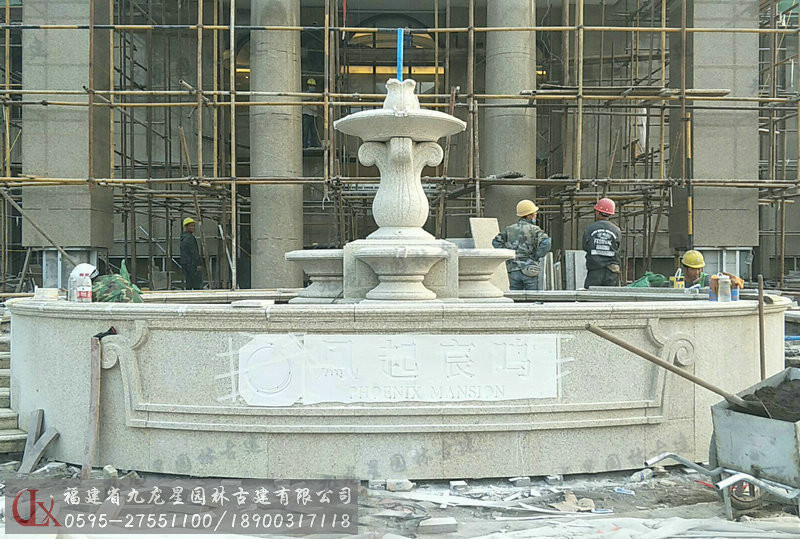 黃金麻石材加工的水缽噴泉結構致密、質地堅硬、耐酸堿、耐氣候性好,適宜在室外長期使用。