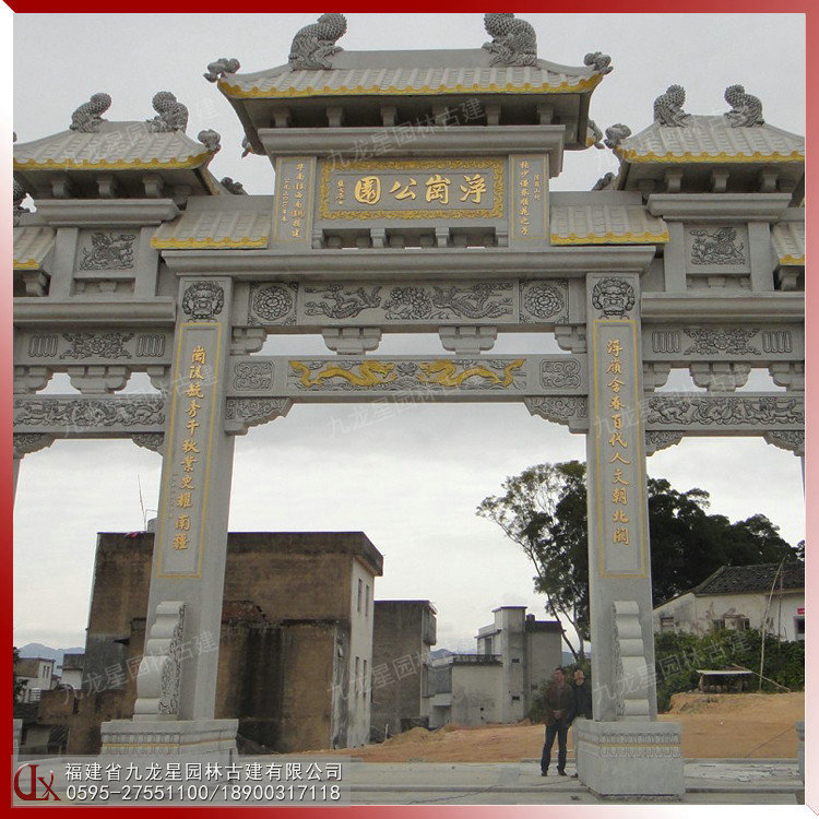石牌坊是用石材修建的一種建筑類型,不僅結(jié)構(gòu)自成一格,別具風采,而且集雕刻、繪畫、匾聯(lián)文辭和書法等多種藝術(shù)于一身,熔古人的社會生活理念、封建禮教、封建傳統(tǒng)道德觀念、古代的民風民俗于一爐,具有瑰麗的藝術(shù)魅力、很高的審美價值和豐富而深刻的歷史文化內(nèi)涵。三門石牌坊就是建有三個門的石雕牌坊樣式,適用于寺廟景區(qū)、園林廣場、別墅小區(qū)、村莊路口等裝飾擺設(shè)。