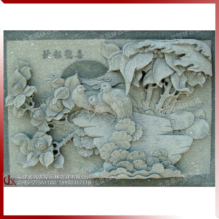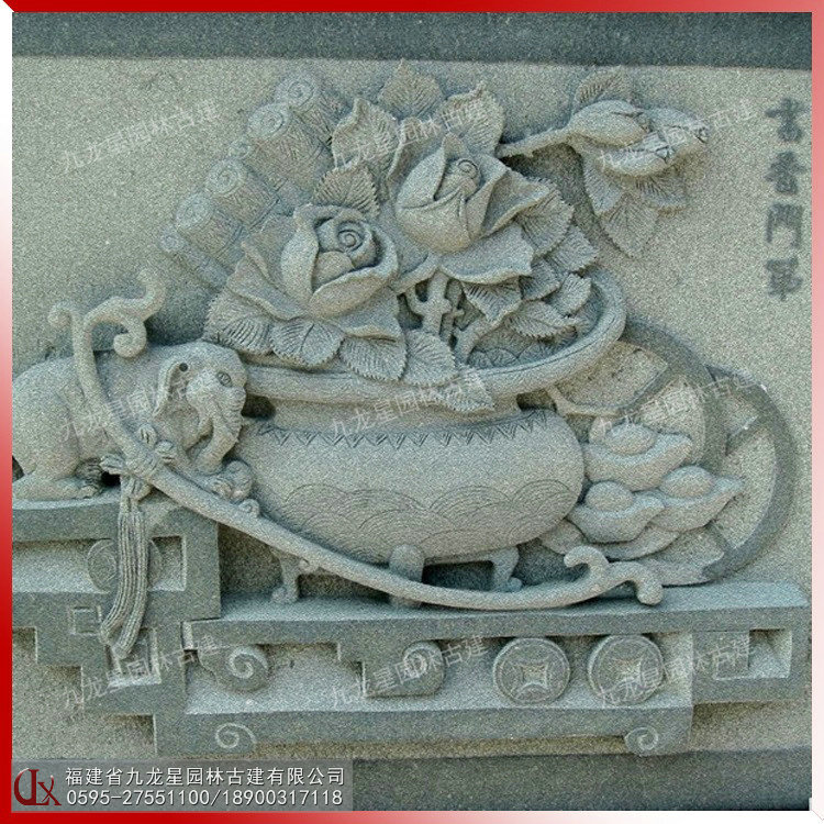 傳統美好寓意浮雕圖案 古建石雕文化墻 照壁雕刻