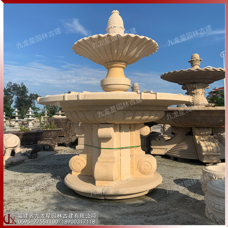 黃銹石石雕噴泉安裝效果 惠安石雕噴泉 廠家價(jià)格